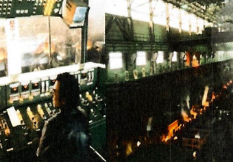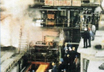 1989年自动化院承建唐钢国内首条高速棒材生产线投产及过钢现场。